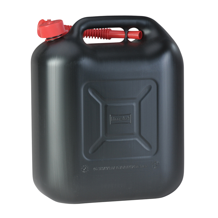 Kraftstoffkanister aus HD-PE mit UN-Zulassung nach ADR/GGVSEB für den Transport von Gefahrengüter, mit Kindersicherheitsverschluss, E10 geeignet, inkl. Auslaufrohr, Durchmesser der Füllöffnung 29 mm