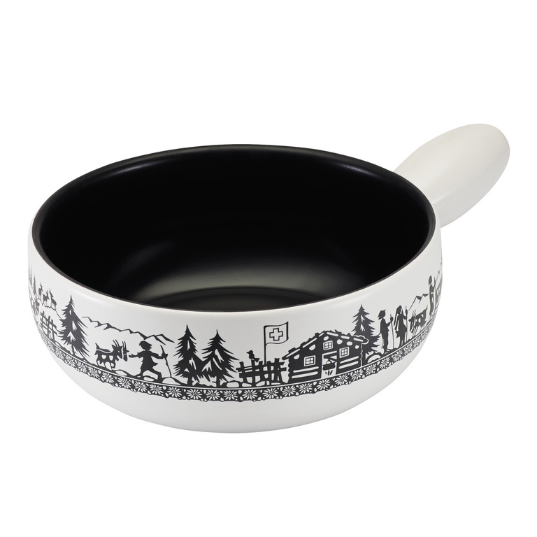 Dieses induktionstaugliche Caquelon überzeugt mit speziellem Design und hochwertiger Qualität. Das Dekor wurde exklusiv durch das Kuhn Rikon Designteam in der Schweiz entworfen. Das Scherenschnittdekor "Alpweide" lädt zum gemütlichen Fondueplausch ein.