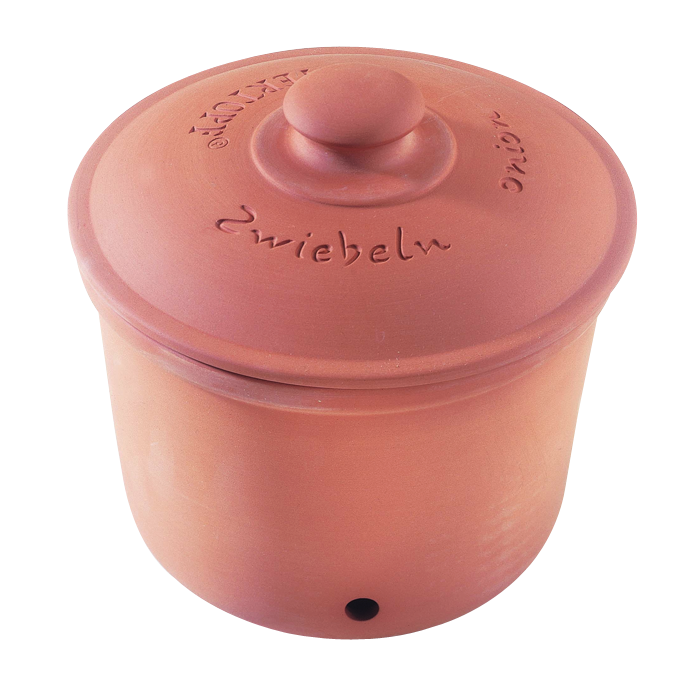 Jetzt ist Schluss mit dem Ärger um Zwiebeln, die zu schnell keimen oder gar schimmeln. In unserem speziellen Frische-Topf werden die Zwiebeln quasi klimatisiert aufbewahrt – und das auf ganz natürliche Weise. Der rote Ton aus dem Westerwald, der als Material dafür verwendet wurde, absorbiert Feuchtigkeit und gibt sie nach außen ab. Das hat zugleich einen kühlenden Effekt, der den Zwiebeln äußerst gut bekommt. Sie können also beim nächsten Einkauf gern anderthalb Kilo auf Vorrat einkaufen – so viel passt nämlich in Ihren neuen Frische-Topf.