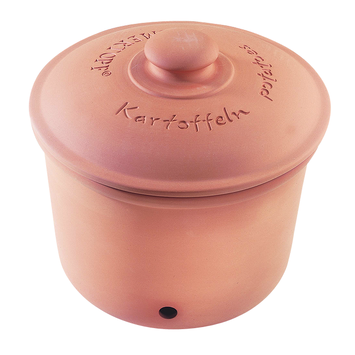 Kennen Sie das? Sie kaufen Kartoffeln, die schon nach wenigen Tagen zu keimen beginnen und nicht mehr zu gebrauchen sind. Unser Frische-Topf speziell für Kartoffeln ist die Lösung für dieses Problem. Drei Kilo Kartoffeln passen bequem hinein und sie bleiben dank des Materials und der Belüftungslöcher lange frisch. Der rote Ton aus dem Westerwald wirkt wie eine natürliche Klimaanlage, die Löcher sorgen für eine optimale Zirkulation der Luft. So bleibt es im Topf angenehm kühl und trocken. Staunässe und Schimmel haben keine Chance.