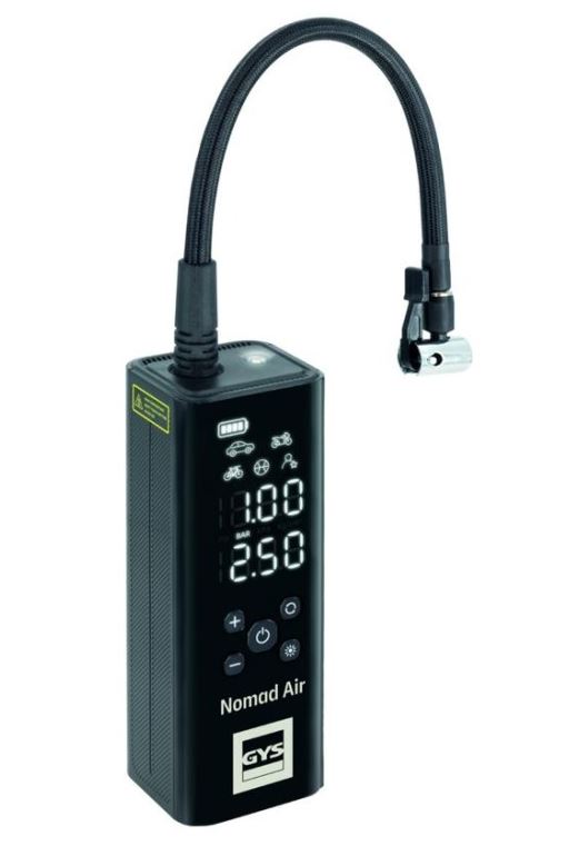 Der NOMAD AIR ist ein tragbarer Kompressor, der Leistung und Vielseitigkeit in einem ultrakompakten Format bietet. Mit einem Druck von bis zu 10 bar sorgt er für ein präzises und schnelles Aufpumpen Ihrer aufblasbarer Gegenstände: Von den Sportbällen bis zum Autoreifen. Eine echte Multifunktionslösung verfügt über einen Lithium-Akku mit hoher Kapazität, der sowohl als Powerbank als auch als Ersatzlampe dient - eine 3-in-1-Lösung, die immer Sie ständig begleitet.