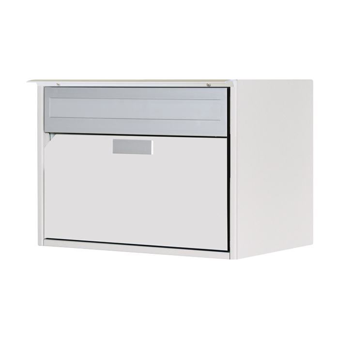 Ganzalukonstruktion mit Regenschutzleiste, Gehäuse und Ablagefachtüre pulverbeschichtet, Ablagefach in Kastenfarbe, Briefeinwurf farblos eloxiert, einfache Montage auf Einzelstütze, Seitenstützen oder Wandmontage mit Wandkonsole, Lieferumfang: Sicherheitsschloss mit 2 Schlüssel, Rundzylinder-Ausschnitt 22 mm, auswechselbares Alu-Namenschild, ohne Stützen, zusätzlich erhältlich: "Bitte keine Werbung"-Schild, keine Gruppenkombination möglich