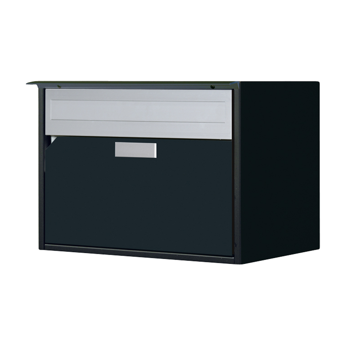 Ganzalukonstruktion mit Regenschutzleiste, Gehäuse und Ablagefachtüre pulverbeschichtet, Ablagefach in Kastenfarbe, Briefeinwurf farblos eloxiert, einfache Montage auf Einzelstütze, Seitenstützen oder Wandmontage mit Wandkonsole, Lieferumfang: Sicherheitsschloss mit 2 Schlüssel, Rundzylinder-Ausschnitt 22 mm, auswechselbares Alu-Namenschild, ohne Stützen, zusätzlich erhältlich: "Bitte keine Werbung"-Schild, keine Gruppenkombination möglich