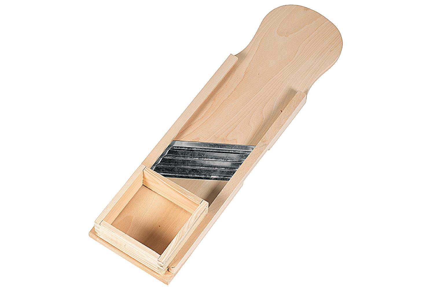 Buchenholz / Klingen Edelstahl rostfrei, mit 3 Klingen, zum Kleinraspeln des Krautkopfes und mit Schubkasten, die Klingen sind abnehmbar zum Schärfen