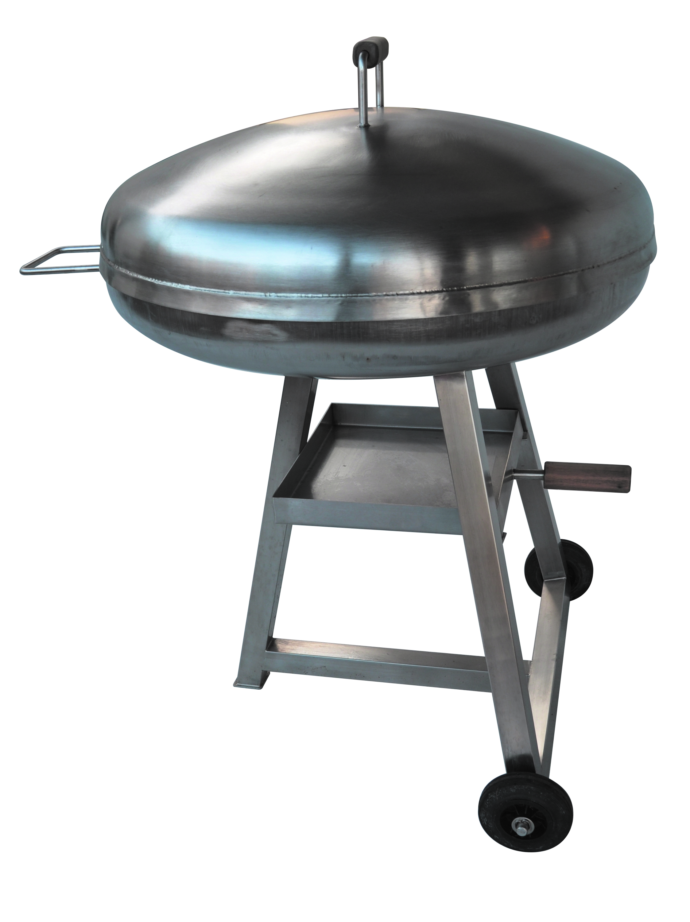 Kugelgrill 70cm, Inox, fahrbar, komplett, Lamellengrill 60cm mit 2 Griffen, Deckel und Tropfblech, Gewicht 40kg.