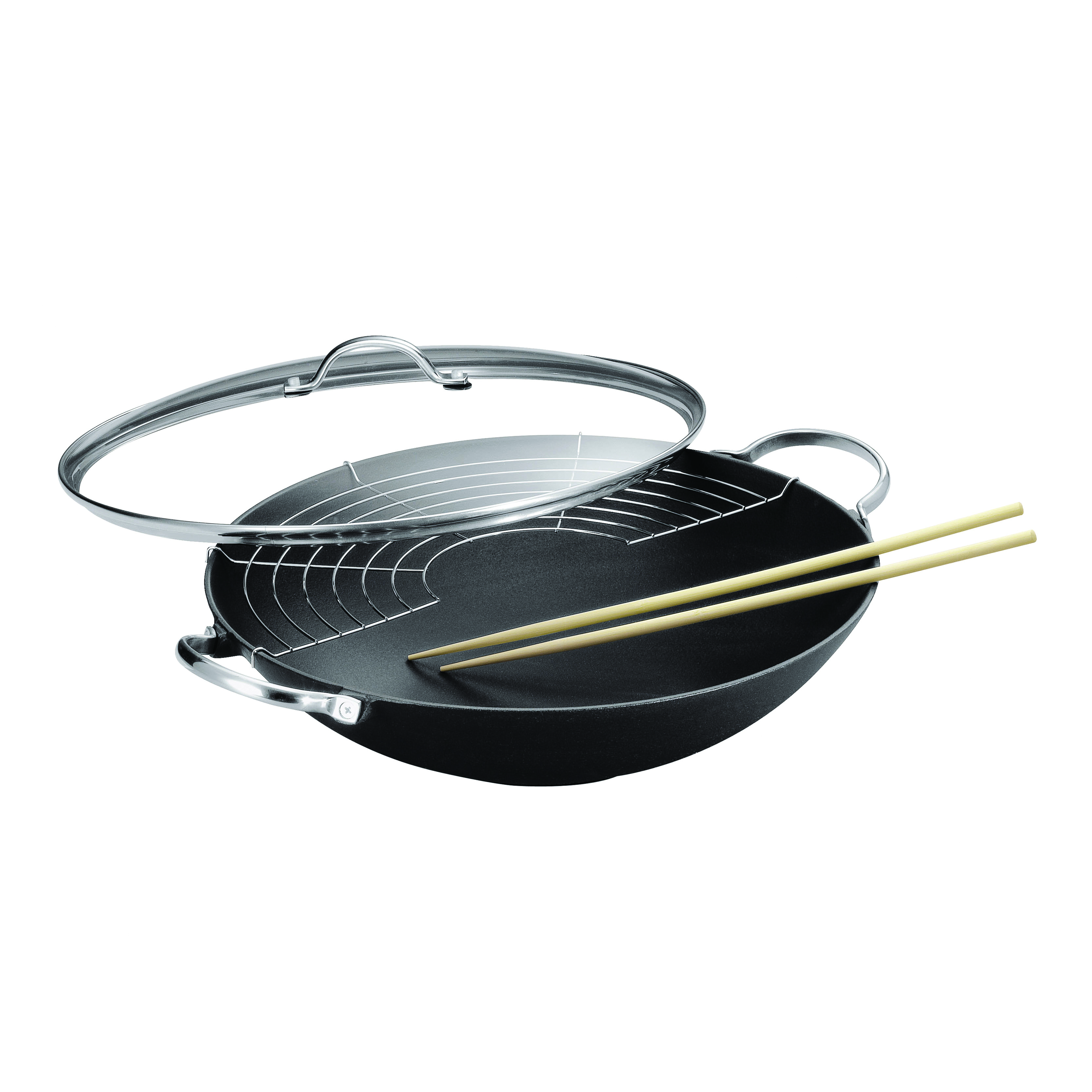 In dem formschönen Eisenguss-Wok wird Gemüse, Fleisch oder Fisch bei mittlerer und grosser Hitze gesund und schonend zugleich zubereitet. In der Küche, nicht nur der asiatischen, ein Muss.