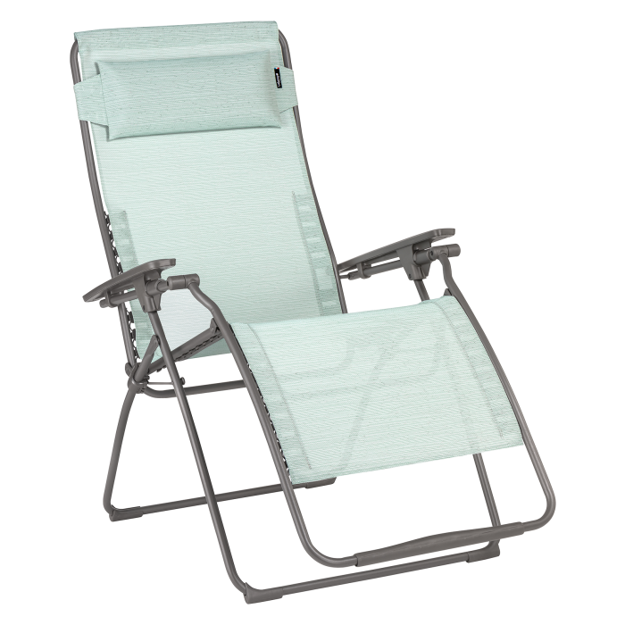 Rahmen aus lackierten Stahlrohren mit Ø 20 mm, ergonomische Harz-Armlehnen, Position stufenlos verstellbar bei festen Armlehnen, Fixierung der Position durch Feststellbremse, Bezug abnehmbar, Batyline®Duo Gewebe ermöglicht die Herstellung von Artikeln speziell rund um Schwimmbäder,mit hervorragender Widerstandsfähigkeit gegen UV-Strahlung, fungizider Imprägnierung und luftigem Gewebe, damit das Wasser ablaufen kann, Batyline® Gewebe ist besonders reissfest, verformt sich nicht und ist leicht zu reinigen, auch hier wird Umweltschutz betrieben, Qualitätslabel Oeko-Tex® (zuverlässige Textilkontrollen auf ungiftige Substanzen), Federung und Befestigung des Bezuges durch patentiertes Clippe-System, ergonomisches, verstellbares und abnehmbares Kopfpolster, Schoner zur Fussauflage und Bodenschoner für hohe Stabilität