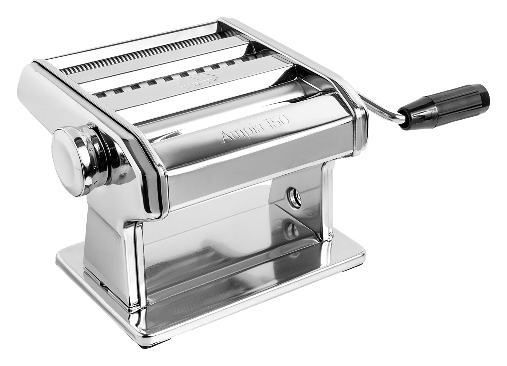 aus hochwertigem Edelstahl, Walzen aus eloxierter Aluminiumlegierung, es können 3 verschiedene Nudelvarianten hergestellt werden nämlich Lasagneblätter, Fettuccine (6 mm) und Tagliolini (1,5 mm), die Teigblätter für die Lasagne können dank dem eingebauten Regler in unterschiedlichen Stärken hergestellt werden, von 0,6 mm bis zu 4,8 mm
