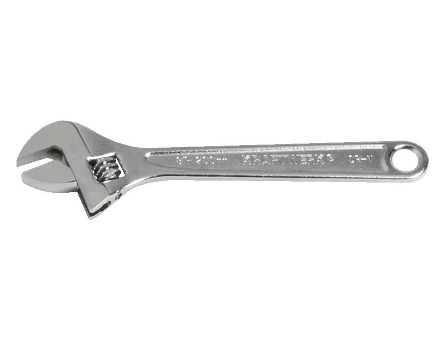 Stufenlos einstellbarer Rollgabelschlüssel mit einer Schlüsselweite von 0 bis 45 mm und einer Länge von 375 mm. Aus Chrom-Vanadium nach DIN 3117 / ISO 6787 mit Skala und Aufhängeloch.