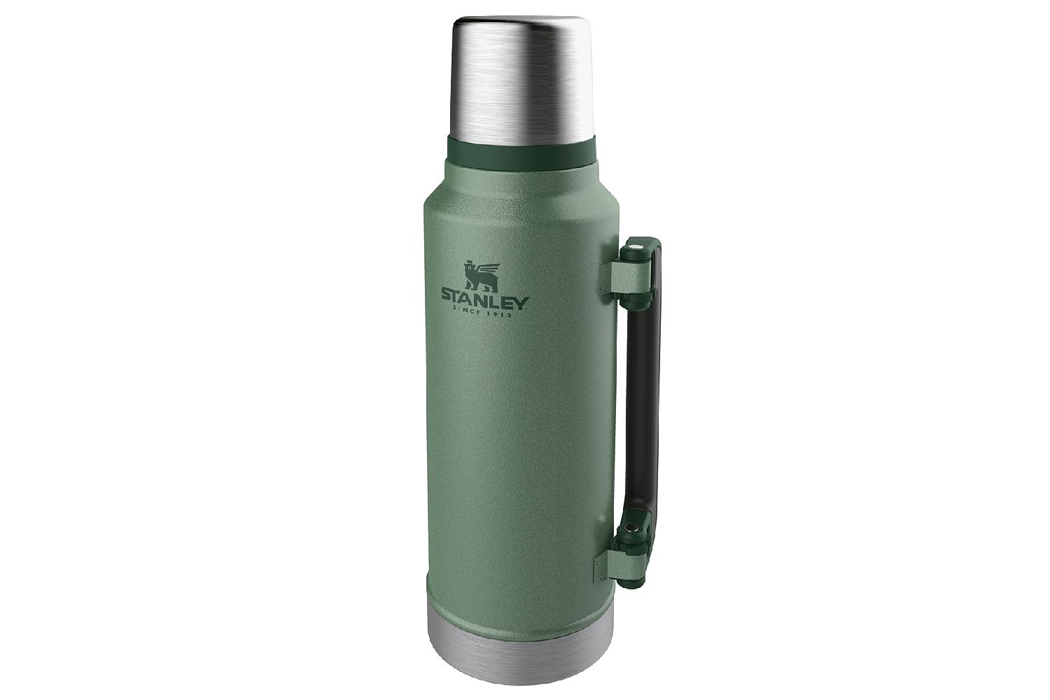 Diese doppelwandige Stanley CLASSIC VAKUUM-FLASCHE hat ein Fassungsvermögen von 1,4 Liter und hält Getränke bis zu 40 Stunden heiss oder 35 Stunden kalt. Die aus rostfreiem 18/8 Edelstahl gefertigte Vakuum-Flasche überzeugt mit einem ansprechenden Design in Hammerschlag-grün. Der seitlich montierte Kunststofftragegriff sorgt für einen problemlosen Transport. Über dem Flaschenverschluss sitzt ein Trinkbecher, der ebenfalls isolierend ausgelegt ist. BPA-frei!