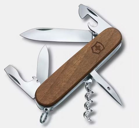 Funktional und trotzdem elegant: Mit seinen 10 wesentlichen Funktionen hat unser Schweizer Taschenmesser Spartan Wood dennoch ein schlankes Profil. Seine Schalen bestehen aus elegantem, robustem Nussbaumholz. Durch das Holz wirkt es wie handgefertigt und fühlt sich sehr angenehm an. Aufgrund seiner natürlichen Maserung ist jedes Exemplar einzigartig. Das Messer ist aber trotz seiner Leichtigkeit, edlen Optik und der sanften Haptik ein absolut robuster Begleiter – im täglichen Gebrauch und Abenteuer, ob in der Hosentasche oder im Werkzeugkasten getragen.