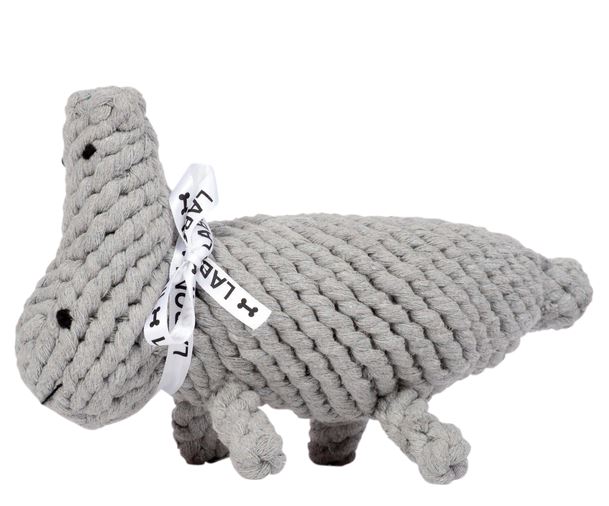 Nina Nilpferd ist als Topmodel dick im Geschäft und beweist, dass man keine Size Zero braucht, um als fabelhaft auszusehen. Ob Kauen, Werfen oder Apportieren – Nina überzeugt auf jedem Gebiet und bringt Freude in Ihr Zuhause! Mit ihrem massigen Körper und einer stattlichen Grösse von gut 25 cm ist die Nilpferddame besonders für mittlere und grössere Hunde eine ideale Gefährtin für Kau-, Wurf- und Apportierspiele. Handgeknüpft aus reiner Baumwolle bietet das hochwertige Spielzeug von LABONI einen echten Zusatznutzen, denn die Baumwollfasern reinigen die Zähne Ihres Lieblings spielerisch. Nina Nilpferd ist wie alle LABONI TOYS maschinenwaschbar bei 30 °C und vom TÜV Süd nach Kinderspielzeugrichtlinie geprüft. Entscheiden Sie sich jetzt für Klasse mit Masse!