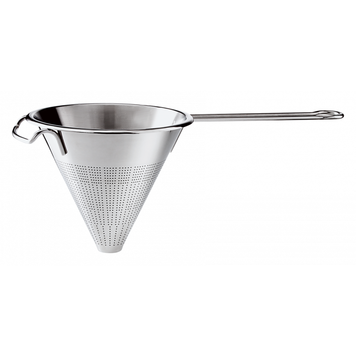 zum Abpassieren von Saucen oder Suppen und zum schnellen Aufwärmen oder Abschrecken, feine rundum laufende Lochung, breite Auflage und stabiler Griff