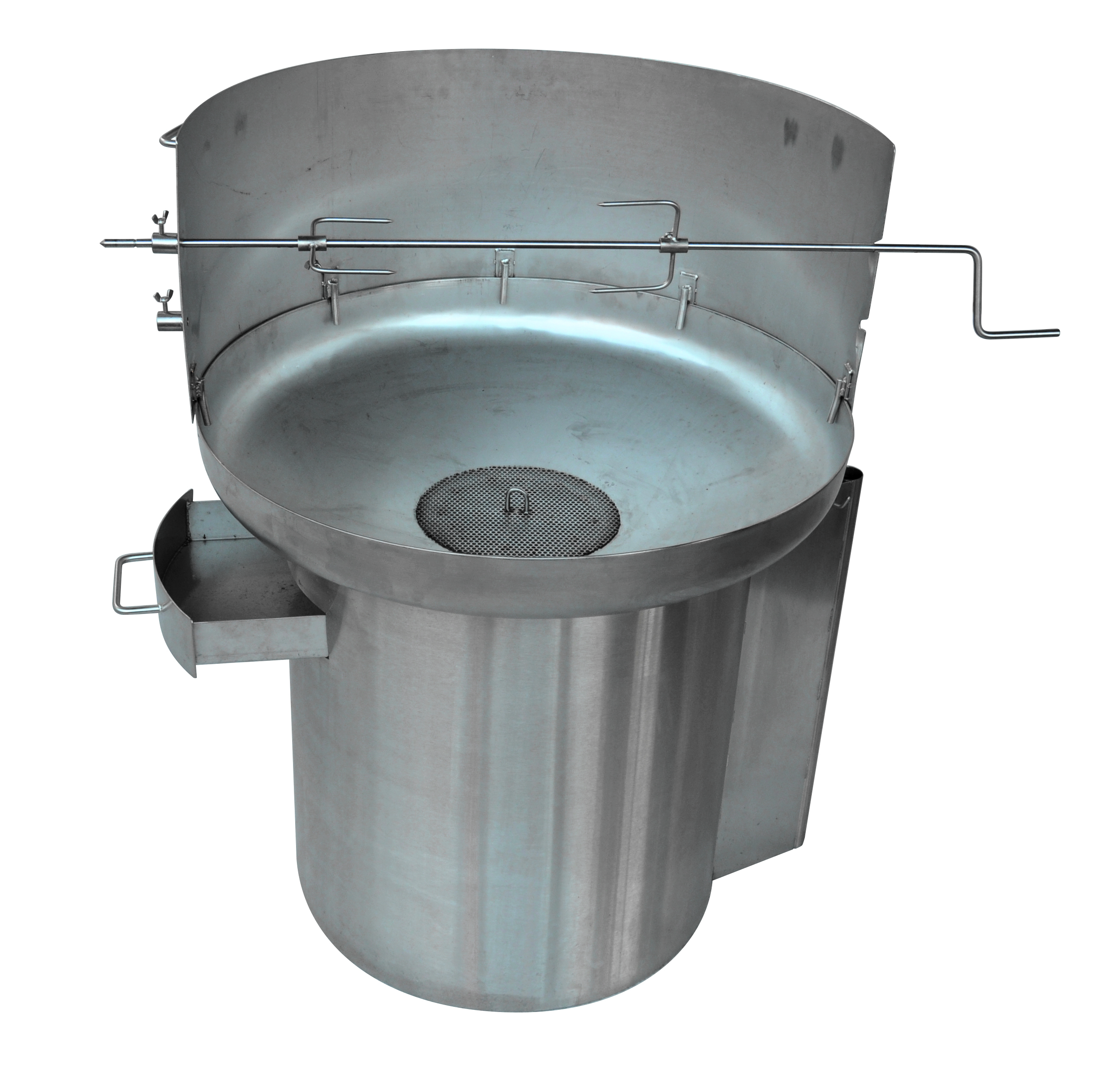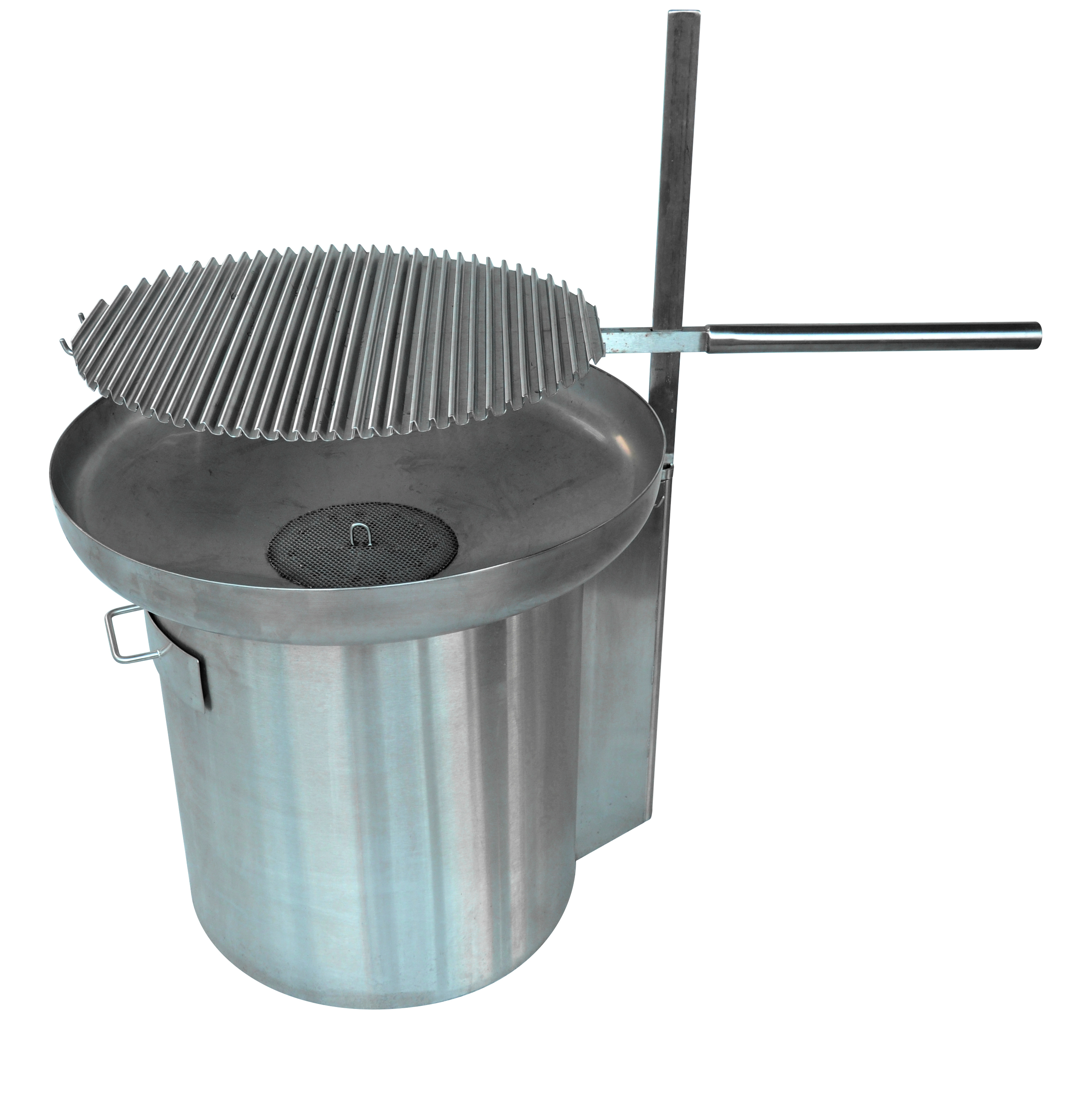 Standschwenkgrill 80cm, Inox, mit Aschenschublade, Höhe 75cm komplett, Lamellengrill 70cm mit Schwenkarm, Windschutz und Drehspiess manuell, Gewicht 69.5kg