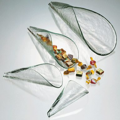 Die Tüten erinnern ans knusprige Glace-Cornet. Roberto Niederer hat sie als Dekorations-Objekt für dies und das in Glas umgesetzt.