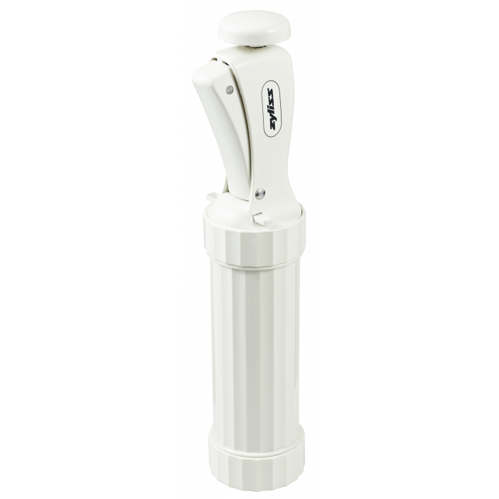 Durch wiederholtes Drücken des Griffs, wird das Vermicelle gleichmässig durch die Pressplatte gepresst.