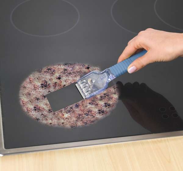 mit verstellbarem Klingenschutz und drei Ersatzklingen aus hochwertigem Edelstahl, ideal geeignet für Glaskeramik-Herde, Glas oder Fliesen, sichere Anwendung durch rutschfesten Griff und Klingensicherung, farbig sortiert