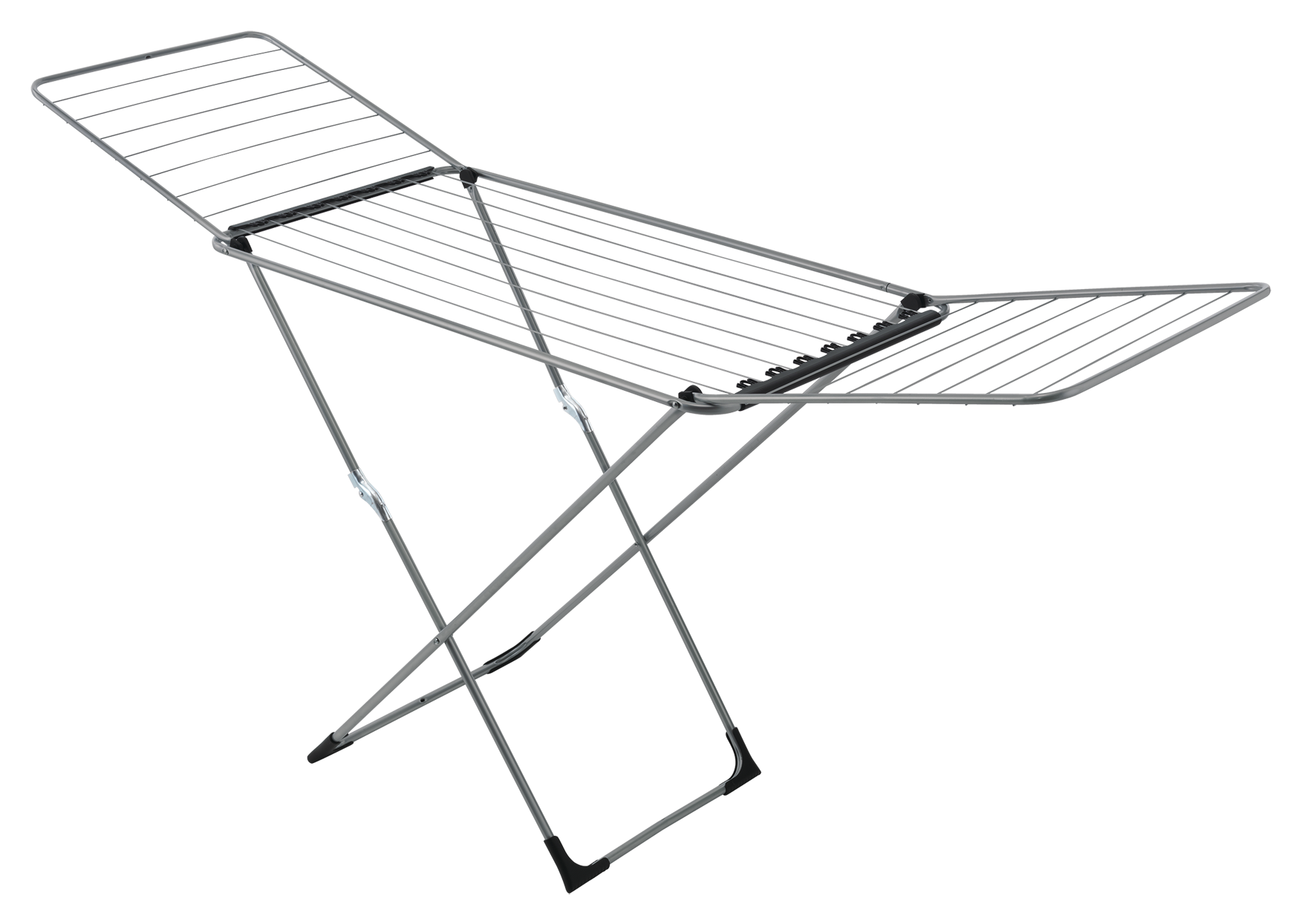 Aus Aluminium, ausziehbar, Trockenlänge 17 m, mit Sockenhalter und Kunststoff-Füssen.