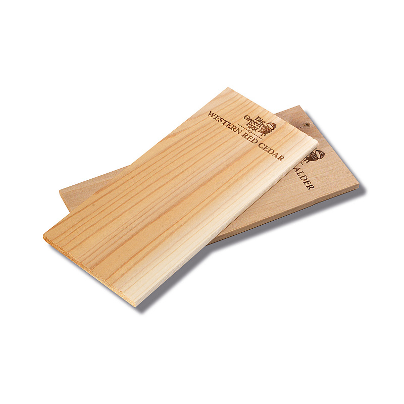 Mit unseren Grillplanken aus Holz erreichen Sie als Chefkoch die nächste Stufe der Kochkunst. Legen Sie die Zutaten auf das (in Wasser eingeweichte) Brett auf den Rost des Big Green Eggs. Die im Holz enthaltene Feuchtigkeit wird nun für einen Raucheffekt sorgen. Zur Auswahl stehen Grillplanken aus Zedern- oder aus Erlenholz, jeweils mit einer eigenen Geschmacksnote.
