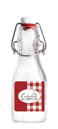 Bügelflasche, vierkant Form, Glas transparent, mit Labeletikette "Einkochwelt"