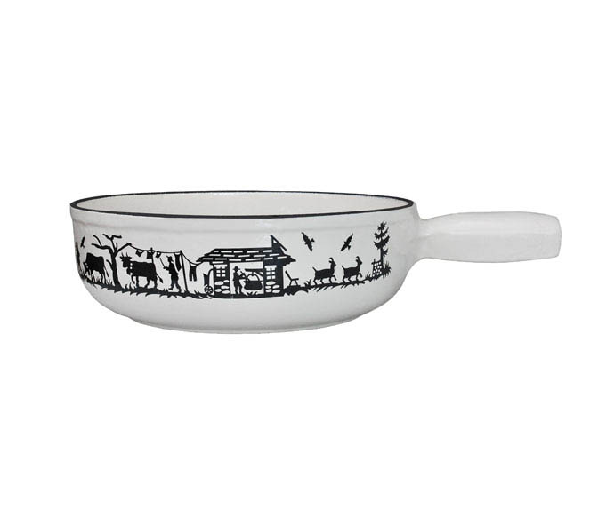 Fondue-Caquelon weiss. Dekor schwarz. H. 78mm, 2.3l.