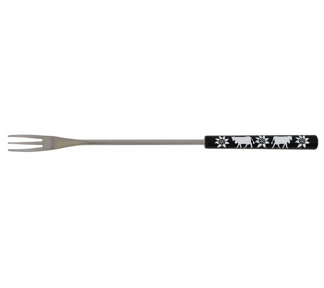6 Stk. Fonduegabel Alpes, 3-zinkig, Griff ABS schwarz mit weissem Dekor